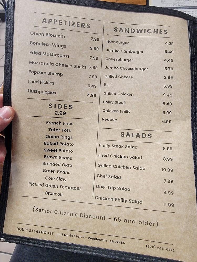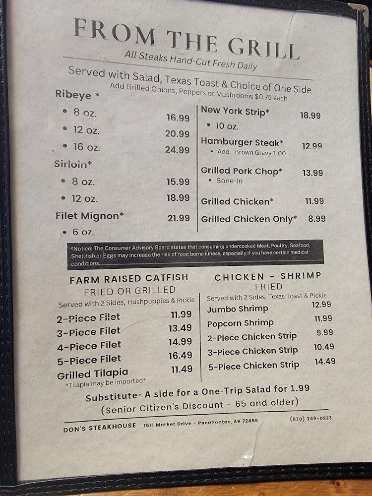 The menu at Don's Steakhouse features a wide variety of dishes catering to meat lovers and vegetarians. Signature items include the New York Strip, Ribeye, and various chicken and shrimp options. Each dish is crafted with attention to flavor and quality.